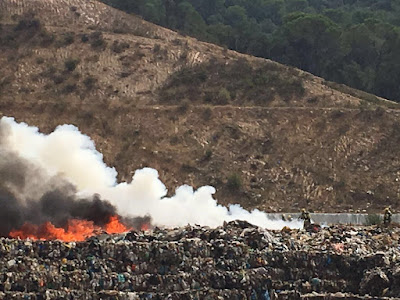 Més imatges de l'incendi que està controlat a dins de l'abocador municipal. Hi ha @bomberscat @adflloret @mossos @PLlloret i Protecció Civil